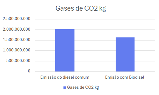 Na Lapa são produzidos 750 milhões de litros de biodiesel por ano. Se esse mesmo volume fosse de diesel comum, seriam emitidos cerca de 2 bilhões de quilos de CO2 na atmosfera. Como o biodiesel emite em média 20% menos gases, isso significa que 405 milhões de quilos de CO2 deixam de ser jogados no ar todos os anos.